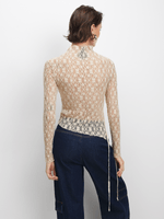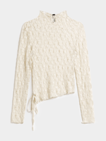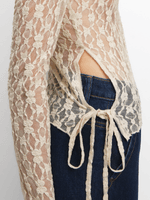 Add this must-have lace top to your wardrobe because it's perfect for all occasions. Featuring a lace fabric & assymetric hem & tie design. Team with your favorite bottoms for a cute look.