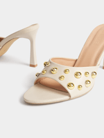 Step out in style with The FIX Natural Studded Mule Heels. Featuring a PU material & studded detailing. Perfect for adding a touch of glamour to any outfit. Comfortable and stylish, these heels are a must-have for your wardrobe.
