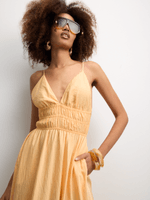 Get summer-ready with our orange strappy dress made from high-quality laundered rayon. Features a flattering V-neckline and a flowy maxi length for effortless style. Perfect for any occasion!