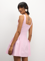 It’s giving boldness, confidence and hot girl math. This pink bengaline mini dress features a snatched square neckline and a subtle bustle in the back that’s straight up drama. Pair with heels or chunky boots and walk in like you own the room. Pretty? Yes. Soft? Never.