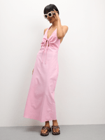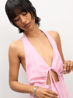 Catch flights, not feelings. This dreamy pink halter maxi is all about effortless vibes and main character energy. The keyhole detail? Total showstopper. Featuring a linen blend. Pair with sunnies and you’re good to go.