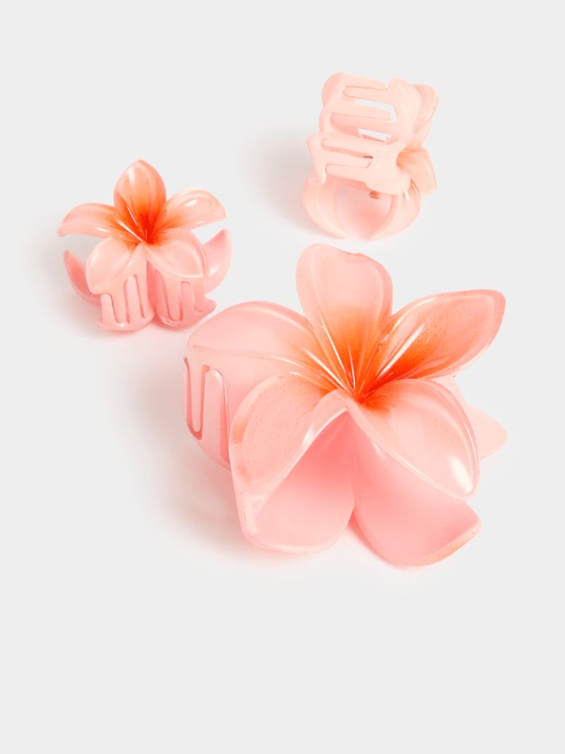 Introducing our pink multi 3 flower claw clip for effortless hair styling. Made of durable plastic, this clip is perfect for securing your hair in style. With a playful design and easy-to-use claw closure, it's a must-have accessory for everyday wear. Elevate your hair game with this charming addition to your collection.