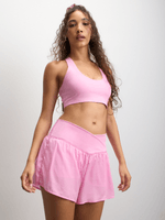 Get your game on in our Pink Cross Front Tennis Shorts. Made from durable polyester, these shorts offer a comfortable fit for all your active occasions. Perfect for all-day wear, feel confident and stylish in these shorts.