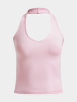 Get your wardrobe summer-ready with this top. Featuring a pink rib fabric, sexy halterneck design and a crop fit. Pair with your favorite bottoms for a chic and effortless look.