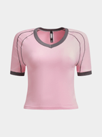 This seamless pink baddie is ready for anything. Featuring a pink seamless fabric, sports design & crop fit. Rock it solo or layer it up — either way, you’re that girl.