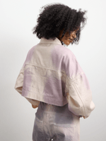 Get your hands on our Women's Pink Spray Cropped Trucker Denim Jacket for a fresh and trendy look. Made with high-quality denim fabric, it's perfect for any occasion. Designed for comfort and style. Stand out from the crowd with this stylish piece!