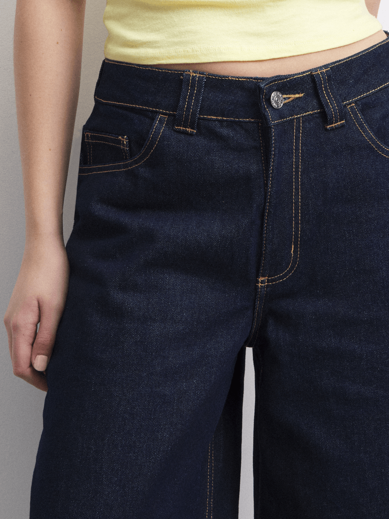 This bermuda denim jorts are coming in clean and mean. Featuring a raw wash denim fabric & a longer length fit. Rock ’em with a crop, corset or oversized tee — these shorts were made to serve looks. No extras needed.
