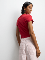Introducing our stylish graphic top in dirty red! Made from a comfy cotton lycra blend, this top features a crew neck and short sleeves. Easy to care for with cool wash and iron instructions. Perfect for adding a pop of spice to your wardrobe.