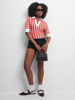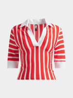 This tee is what we're vibin' with this szn. Featuring a red & white vertical stripe rib fabric, short sleeves. Pair with jeans and sneaks to complete the look.