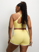 Get ready to ride in style with our sports lux Mini Cycling Short. Designed for comfort and performance, these shorts feature a polyester blend fabric. Perfect for any active lifestyle. Trendy yellow with a milk-colored waistband.