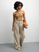 Introducing our Women's Stone 90's Wide Leg Denim. This denim features a wide leg silhouette, perfect for a relaxed and trendy look. Elevate your style with these chic and comfortable denim pants.