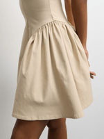 Get ready to turn heads in this stone Bengaline mini dress. The square neckline adds a touch of elegance, while the bustle detail brings a fun, playful vibe. Made from high-quality rayon, this dress is perfect for any occasion. Ideal for those who love unique fashion pieces that make a statement.