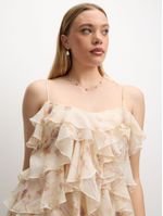 Get ready to turn heads in our stone chiffon floral ruffle mini dress. Featuring a chiffon fabric, a feminine v-neckline and flattering ruffle details. Perfect for any occasion. Style it with ya fave pair of heels and some fiyah acessories. it's a statement screamin' I'm here and I'm fierce!