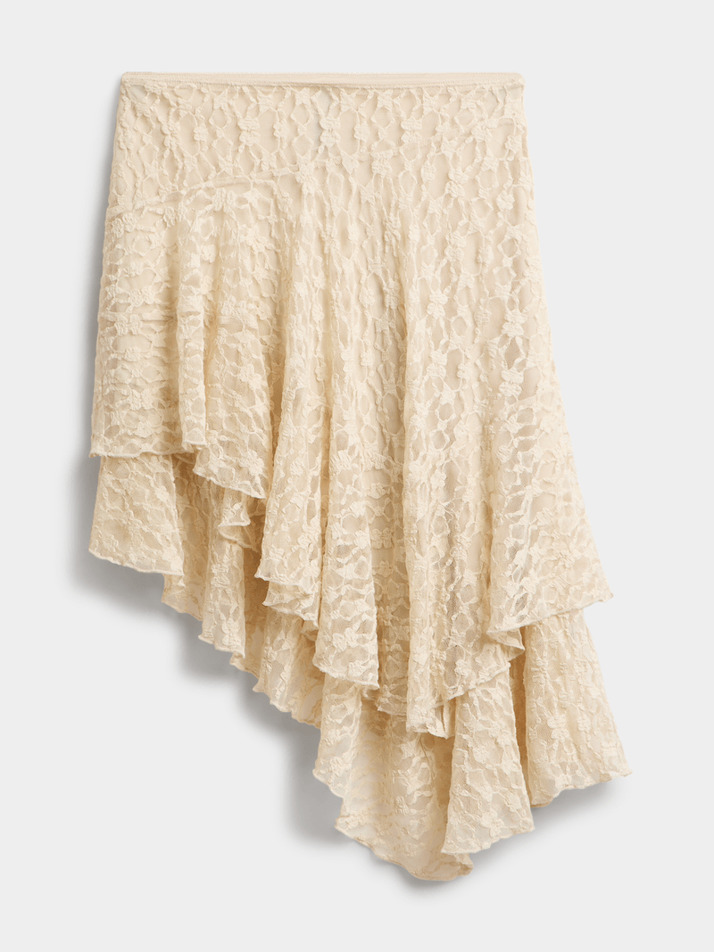 Elevate your style with our stone lace asymmetrical skirt. Crafted with intricate mesh lace, this skirt is designed to make a statement. Perfect for any occasion, this skirt is both chic and sophisticated. Embrace your unique style with this must-have piece.
