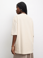 Get ready to rock the Too Glam Graphic Top from The FIX. Made from comfy Single Jersey fabric, this cool tee features a crew neck and short sleeves. Take your style to the next level with this trendy stone-colored top.