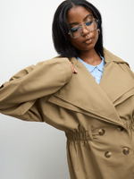 Introducing our stone twill trench coat, featuring a double flap and elasticated waist for a flattering fit. Crafted with high-quality twill fabric, this coat is perfect for keeping you stylish and comfortable.