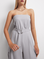 Step out in style with our tailored grey jumpsuit, complete with a chic belted waist for a flattering silhouette. Made from a comfortable polyester blend, this piece is machine washable for easy care. Perfect for any occasion, this jumpsuit will become a wardrobe staple.