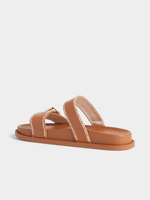 Step out in style with this tan double strap sandals. These trendy sandals feature a intricate whip stitch detailing and a comfortable double strap design. Made for those who value both fashion and comfort. Perfect for any occasion or weekend getaway. Babes this is a must have!