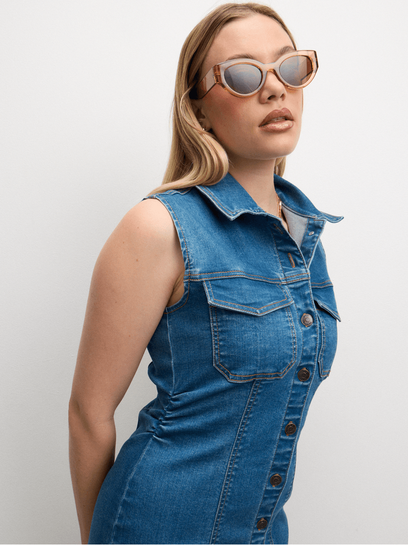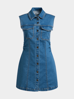 The shirt dress in a trendy tinted wash is a must-have for effortless style. Made from denim, it's cool wash and warm iron-friendly. Designed with a flattering fit, this dress is perfect for all occasions. Feel confident and comfortable in this versatile piece.