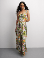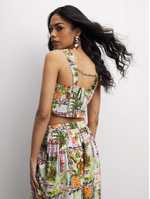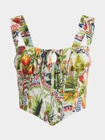 Elevate your style with our tropical print corset top. Featuring a american crepe fabric & strappy corser design. Perfect for any occasion, dress it up or down with the matching top for a effortless look.