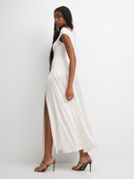 This dress is the perfect addition to your wardrobe. Featuring a white ITY fabric, draped with sexy slit design, this dress is made to turn heads. Style with strappy heels for a scorching look.