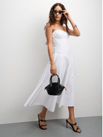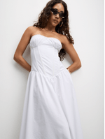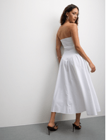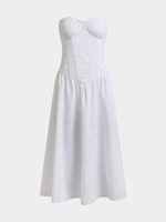 Meet our versatile white bandeau corset dress, perfect for any occasion. Made from poly cotton for comfort and durability. Designed with a flattering silhouette that will make you stand out. Add it to your wardrobe today!