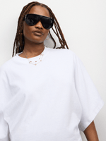 Introducing our white batwing t-shirt, perfect for a relaxed and effortless look. Made from soft single jersey fabric, this tee features a crew neckline and short sleeves. Pair with your favorite bottoms for a chic and effortless look.