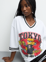 Get cozy in our White Birdseye Oversize Tokyo Teddy 98 Top. Made from soft Birdseye fabric, this top features a V-neck and short sleeves. Perfect for casual days out or lounging at home.