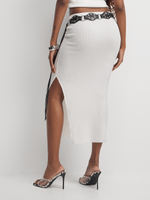 Complete yo' look with this white co-ord skirt. Featuring a ITY fabric and side slit, this skirt goes perfect with it's matching top and a dope sneaker. All you have to do is accessorize and hit the streets.