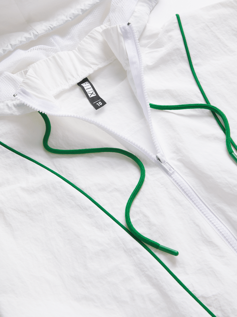 Stay effortlessly stylish in this cropped jacket. Featuring a crinkle taslon fabric, this white zip-through jacket is perfect for any occasion. Featuring a modern cropped length and a flattering fit, it adds a chic touch to any outfit. Rock it with cargos, chunky sneakers for that athleisure drip, or throw over a mini dress to keep it street-chic!