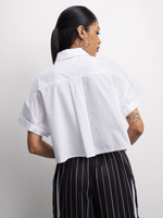 Add this dope shirt to your summer wardrobe, featuring a cropped fit and front pocket detailing. Paired with your fav jeans or skirt for a cute look!