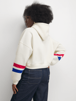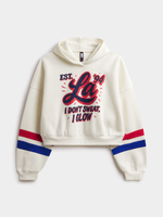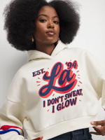 Stay cozy in style with The FIX White Cropped Graphic Hoodie. Featuring a brushed fleece fabric, this sweats features a hooded neckline and long sleeves. Pair with cargos, biker shorts, or baggy denim.