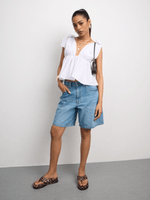 Elevate your style with this halter top in crisp white. Featuring a poly cotton blend fabric, this top features a halter neckline and a flattering fit. Pair with a wide leg jeans & some sneaks to complete the look.