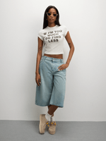 Update your casual wardrobe with The FIX's playful baby tee, this top is lowkey lethal—servin’ skin & sass. Featuring a cotton lycra blend milk coloured fabric, crop fit and a fun graphic print. Pair it with cargos, denim, or whatever’s vibin’—she goes with literally everything!