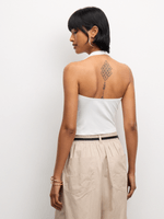 Elevate your style with our white ITY cowl halterneck top. Made from breathable ITY fabric, this top features a flattering halterneck neckline. Perfect for any occasion.