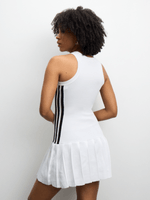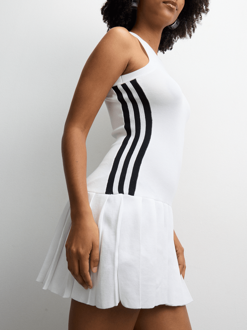 Elevate your tennis game with the FIX White Knit Pleated Dress. Made from a soft viscose blend, this dress features a flattering pleated design. Feel confident on the court with this stylish piece.