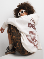 This ain't just a hoodie — it's a whole mood. Featuring a soft brushed fleece fabric, oversized fit with front & back graphic french print that adds a lil ooh la la. Perfect for staying cozy all day long.