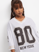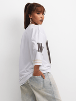 Level up the wardrobe with this top. Featuring a birdseye fabric, dope front graphic print and oversized fit, pair it with some dad jeans and sneakers for the complete fit!