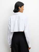 Introducing our White Cropped Shirt with Pearl Detail - a chic addition to your wardrobe. Made from Poly Cotton for comfort, it features a stylish pearl embellishment. Feel confident and stylish in this versatile piece.