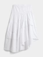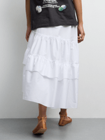 Elevate your style with the FIX Ruffle Maxi Skirt in fresh white. Made from a cozy poly-cotton blend, this skirt features a chic asymmetrical ruffle detail. Pair it with you fav top.