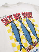 Elevate your casual look with The FIX's white graphic t-shirt featuring a fun 'Sassy Like Sardines' design. Featuring a soft single jersey fabric, this t-shirt has a comfortable crew neck and short sleeves. Stand out in style with this playful tee!