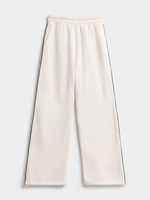 Elevate your loungewear game with our white wide leg jogger featuring stylish contrast piping. Made from cozy brushed fleece for ultimate comfort.Perfect for casual outings or relaxing at home.