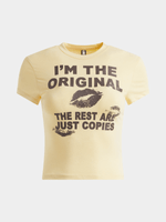 Update your casual wardrobe with The FIX's playful yellow baby top with print. Made from a comfy Cotton Lycra blend, this top features a fun graphic print. Perfect for adding a pop of color to your everyday look!
