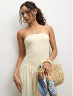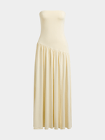 This dress is the perfect addition to your wardrobe. Featuring a yellow ITY fabric, bandeau neckline, draped with sexy slit design, this dress is made to turn heads. Style with strappy heels for a scorching look.
