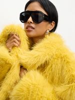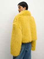 Introducing our chic yellow fur cropped jacket that adds a touch of glam to any outfit. Made from faux fur, this jacket is cozy and stylish. Perfect for staying warm in style, it's a must-have for your wardrobe. Hand wash only for easy care.