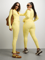 Elevate your athleisure game with this yellow Zip Front Turtleneck Top from The FIX. Crafted from a comfy polyester blend, it features a stylish turtleneck and long sleeves. This top is a must-have for your active wear collection.