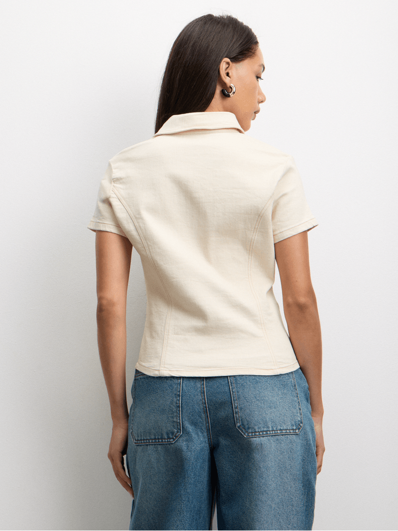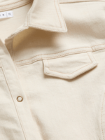 A wardrobe classic with a modern fit, this ecru denim shirt features a cotton fabric & a sleek button-up design. Its got that extra touch to turn basic into baddie.