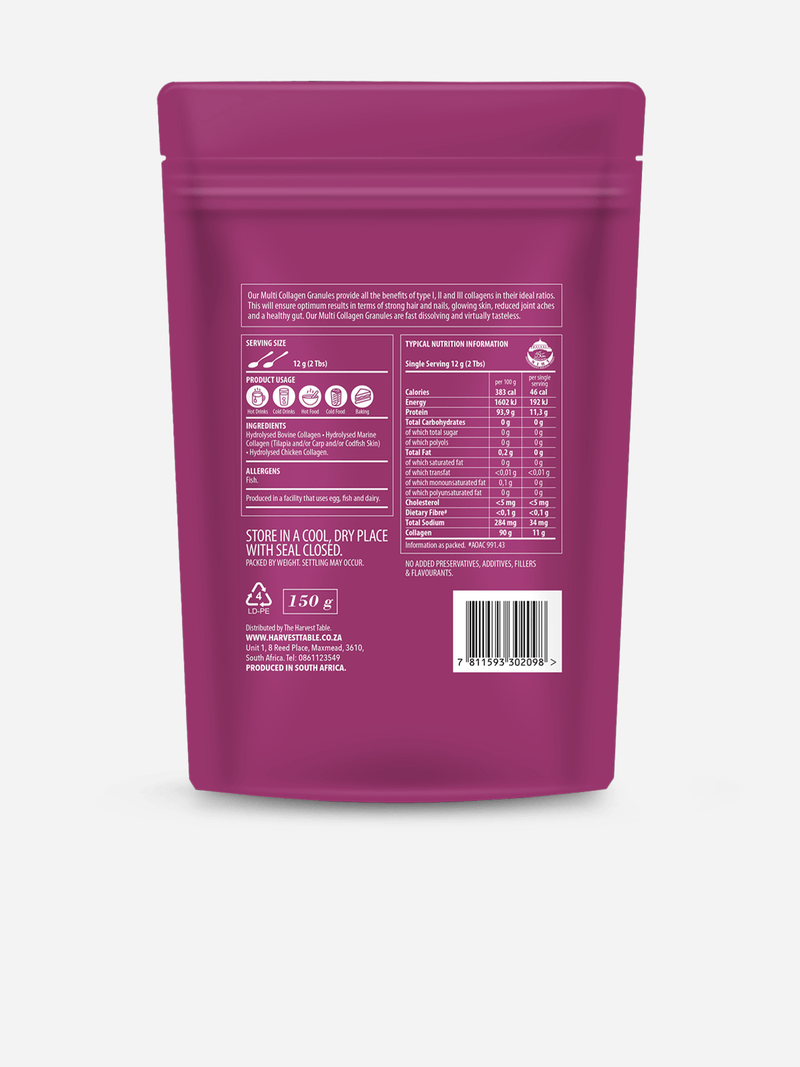 Our Multi Collagen Granules provides all the benefits of type I, II and III collagens in their ideal ratios. This will ensure optimum results in terms of strong hair and nails, glowing skin, reduced joint aches and a healthy gut. Our Multi Collagen Granules are fast dissolving and virtually tasteless.