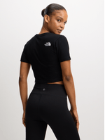 Introducing The North Face Essentials Cropped Slim Black T-Shirt - a comfy and stylish addition to your wardrobe. Made with soft cotton fabric for all-day comfort.