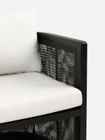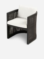 Striking and sculptural, the Emrik Theo Dining Chair makes a bold statement in your dining area. A modern curved aluminium leg and backrest design with woven panelling create an airy yet contemporary feel, while the plush fabric cushions offer ultimate comfort.